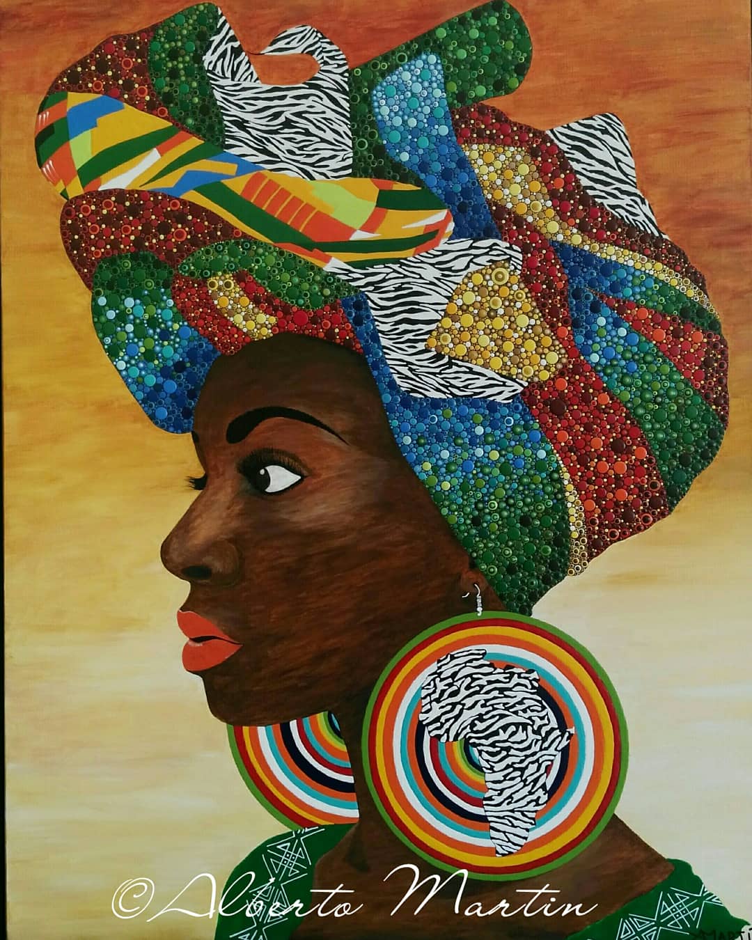 Original dot art painting by Alberto Martin. African woman art. The name Lewa means " Beautiful" and is of African origin,